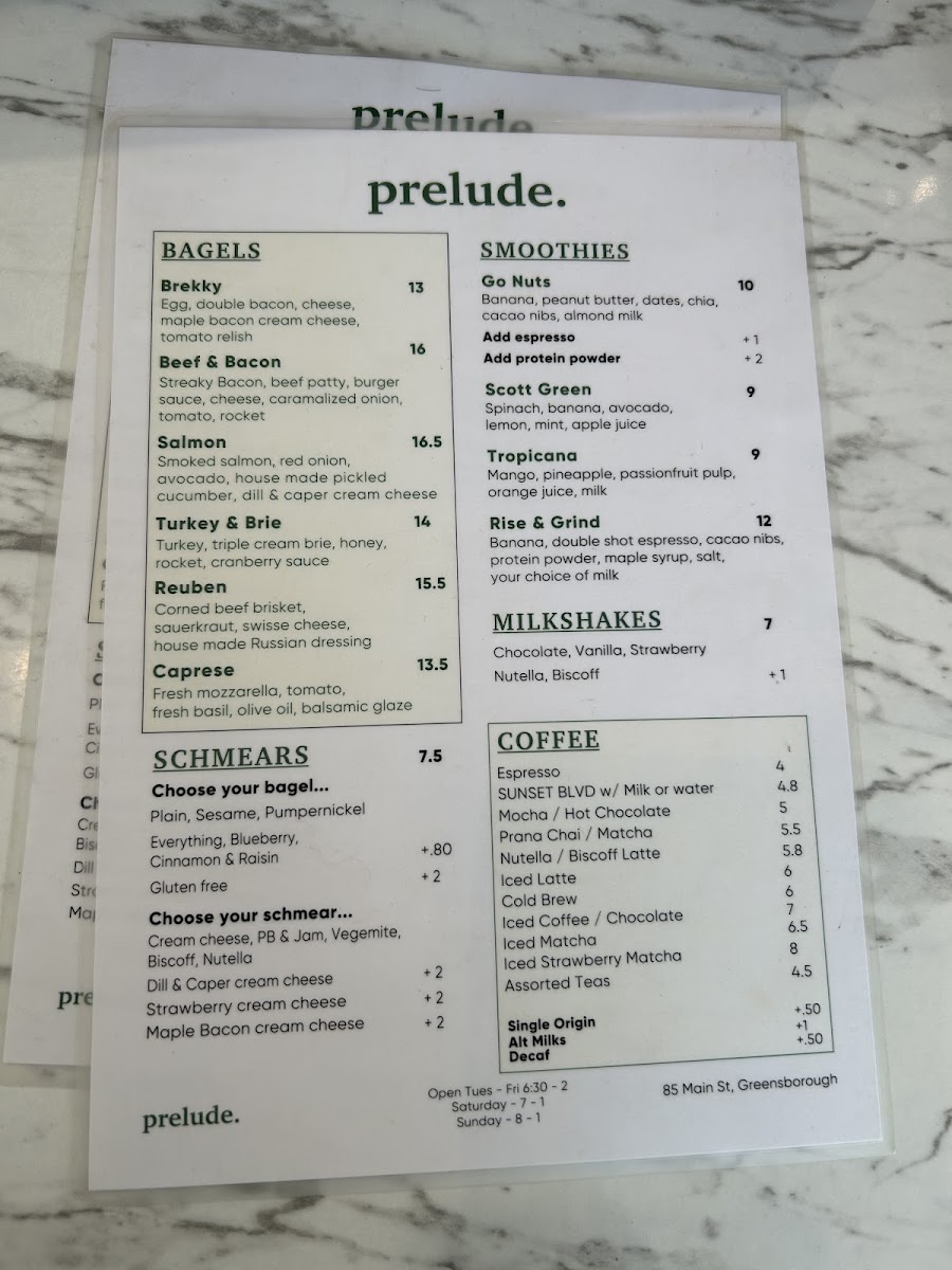 At Prelude Coffee & Bagels, nestled in the heart of Greensborough, a delightful assortment of flavors awaits you. Renowned for its exceptional quality, the menu features a variety of meticulously crafted offerings that celebrate the essence of bagels and coffee.